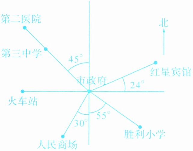 (4)第二醫院和第三中學都在市政府北偏西45°。