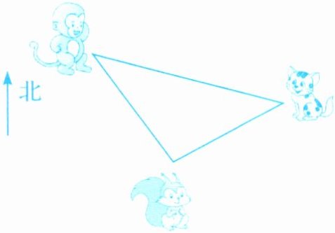 答案:本題可根據“上北下南,左西右東”的方向辨別方法來確定各個動物之間的方向關系。