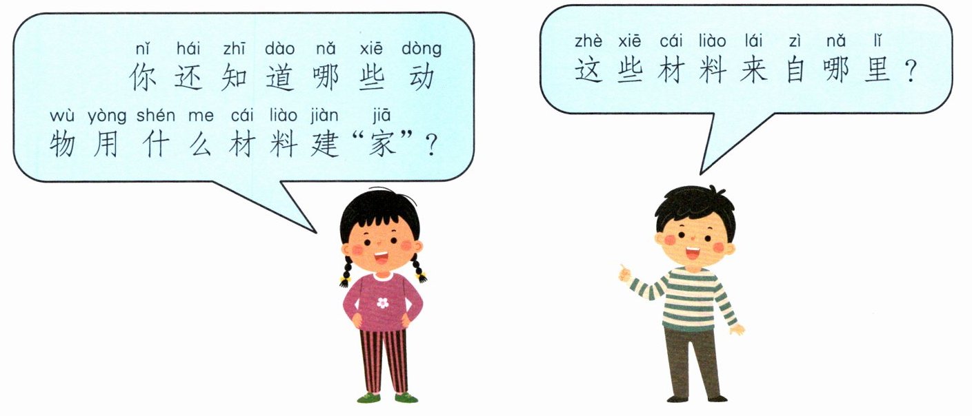 觀察活動:下圖中燕子的巢是用什么材料建造的?請填寫在方框里。