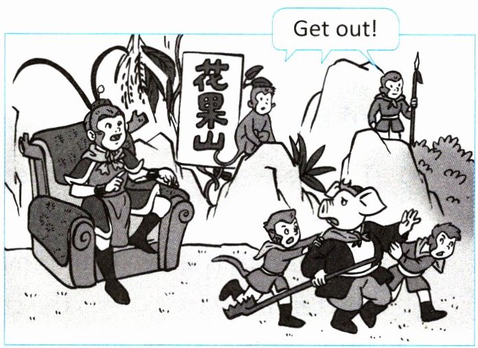 答案:Long long ago, there were many monkeys. They lived in Huaguo Mountain. One day, Zhu Bajie visited them. Monkey King shouted "Get out!". All the monkeys pointed at Zhu Bajie and laughed.