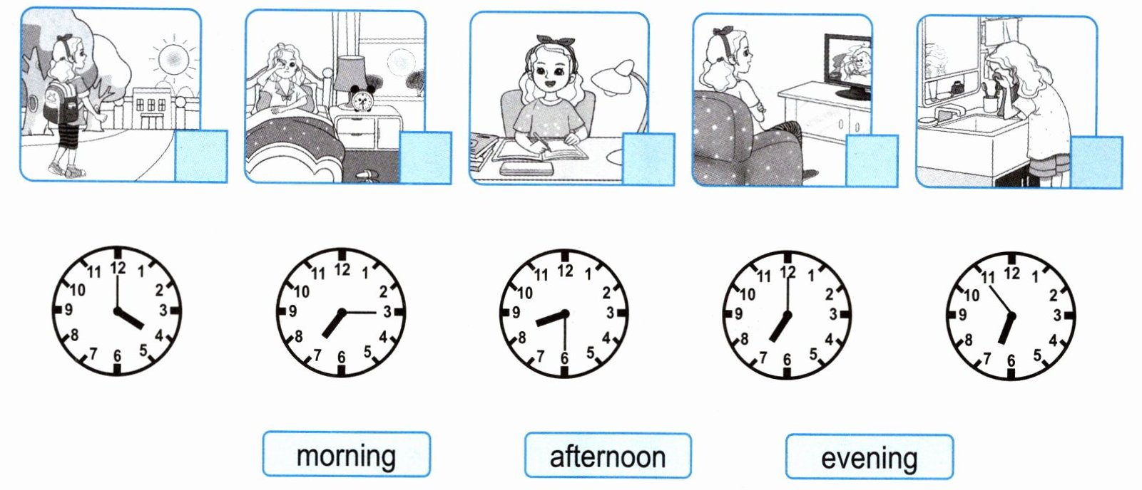 ■ 2. Look at the clocks and write. 看鐘表,寫(xiě)句子。