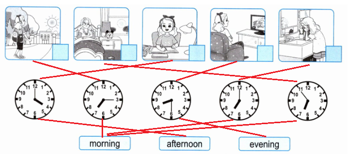 ■ 1. Listen, number and match. 聽(tīng)音,給圖片標(biāo)號(hào),然后與相對(duì)應(yīng)的時(shí)間連線(xiàn)。