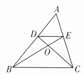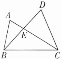 圖中共有$5$個三角形,用符號表示為:$\triangle ABE$,$\triangle EBC$,$\triangle ECD$,$\triangle ABC$,$\triangle DBC$,其中以 $BC$ 為邊的三角形有$3$個;