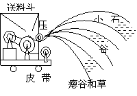 在谷物收割和脫粒過程中,小石子、草屑等雜物很容易各谷物混在一起,另外,谷粒中也有癟粒,為了將它們分離可用揚場機,如圖所示,它的分選原理是